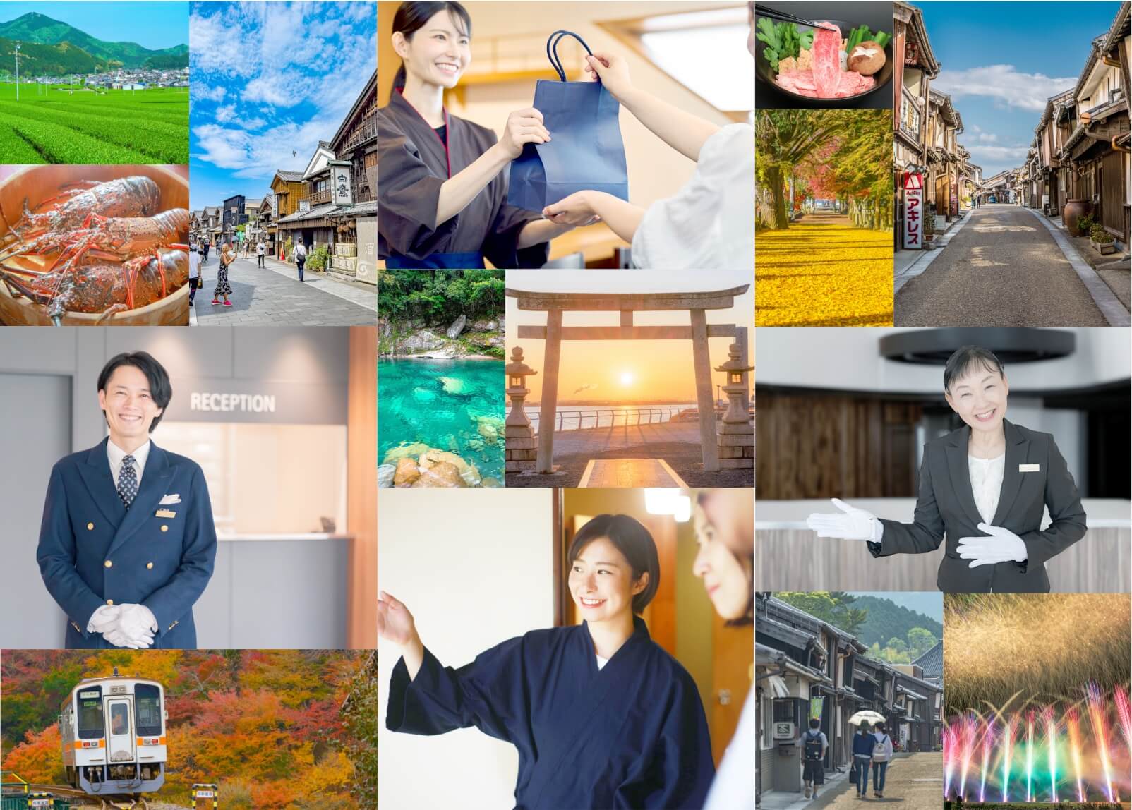 ホテル・旅館、レジャー施設、交通機関、地域ガイドなど、活躍のフィールドは多彩。観光を通じて人と地域をつなぎ、未来を創るキャリアが、三重県にはあります。