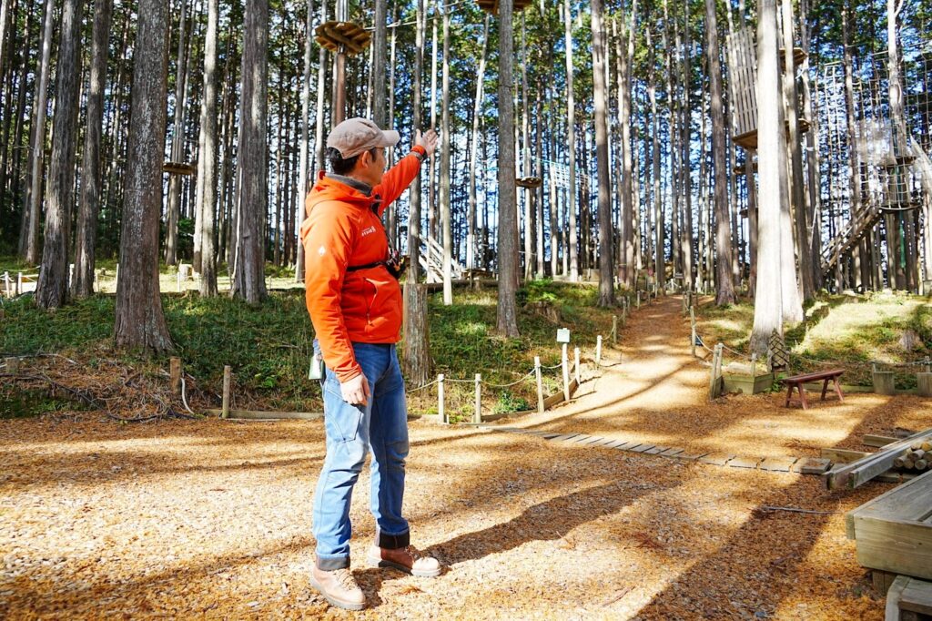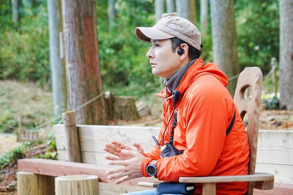 レジャー施設と聞くと、『自然を壊すのでは?』『コンクリートで固めてしまうのでは?』と心配される方も多いんです。でも私たちは、森を切り開くのではなく、間伐などを行いながら”森を利用して、良くしていく”事業です。