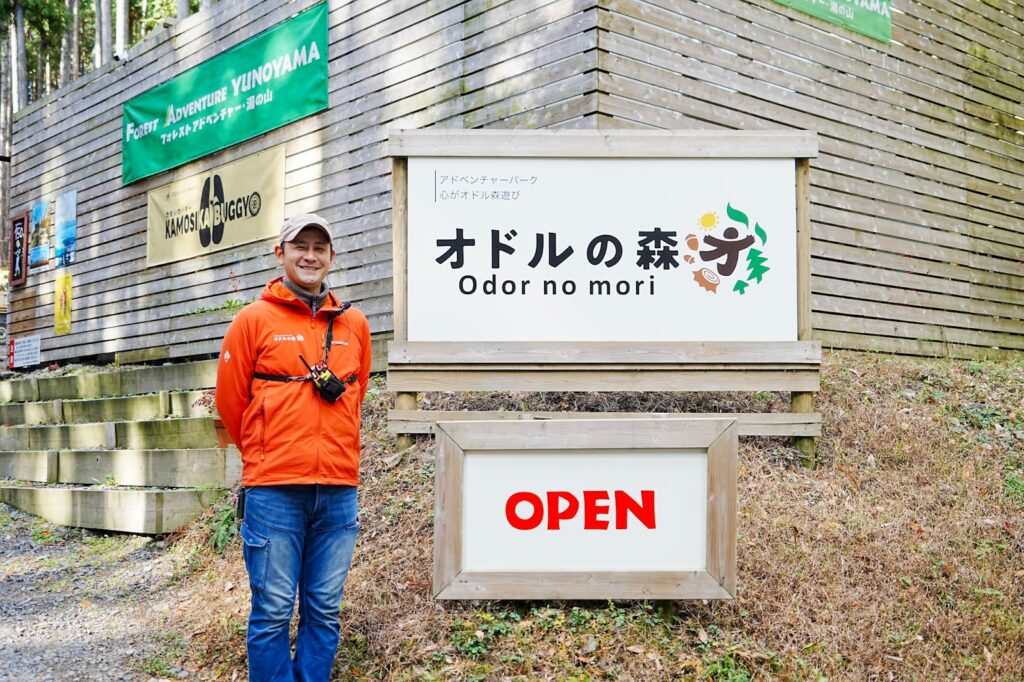 三重県菰野町、湯の山温泉のほど近くに位置する「フォレストアドベンチャー・湯の山」。 2024年、ここは新たに「オドルの森」として生まれ変わりました。 かつて放置されていた里山を、「自然をそのまま活かしたリクリエーションの森」として再生させるプロジェクト。フランス発祥のアウトドアパーク「フォレストアドベンチャー」に加え、新たに四輪バギーで森を駆け抜ける「カモシカバギー」もスタートしました。 今回は、酒蔵の蔵人から転身し、2024年2月に株式会社森の香りの代表取締役に就任した大森ユキトさんに、森で働く魅力や、菰野町での挑戦についてじっくりとお話を伺いました。