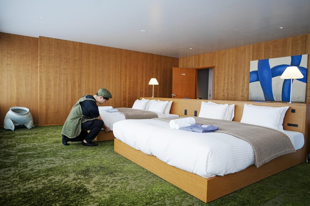 藤本さん:「メインはレセプションですが、少人数のチームなので何でもやります(笑)。チェックイン・アウトの対応はもちろん、客室のチェック、時にはキッチンの洗い物をお手伝いすることも。スタッフ一人ひとりが『より良いサービスのために』と日々考え、助け合いながら動いている、とても意欲的な職場です。」