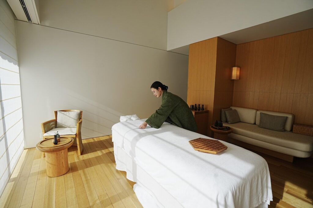 三井さん:「やはり、圧倒的な自然の美しさと、ゆっくりとした時間が流れる空間です。スパメニューも豊富で、オイルマッサージだけでなく、サウンドヒーリングや鍼灸も行っています。また、水中で行うトリートメント『ワッツ(WATSU)』専用プールを有していたりと、多様なウェルネス体験を通じて、心身ともにリラックスしていただけるのが最大の特徴です。」